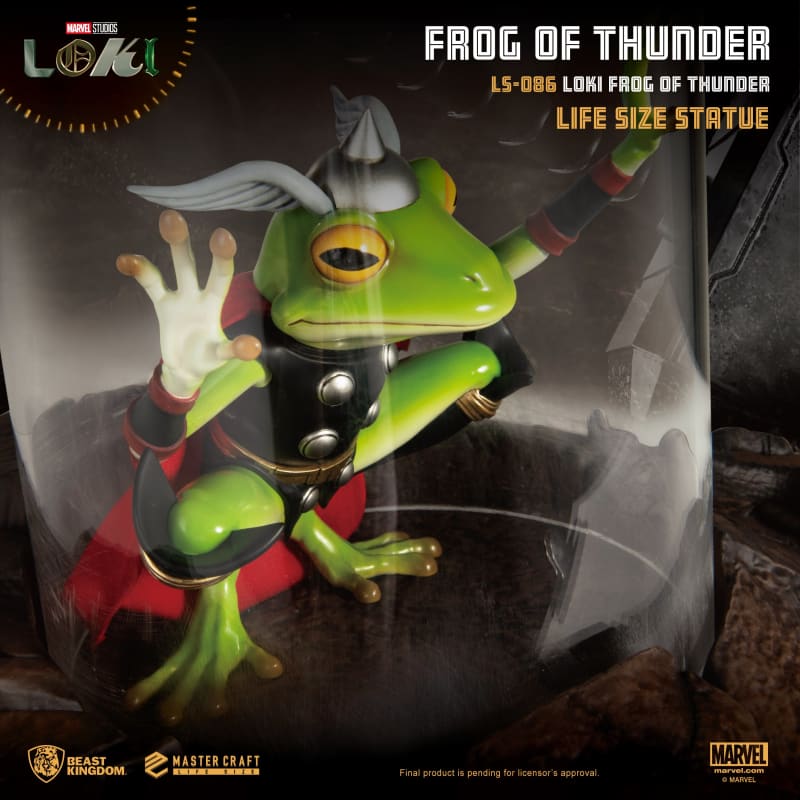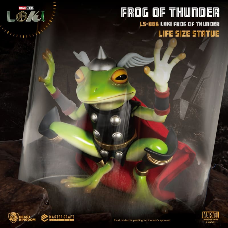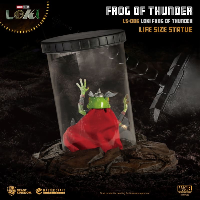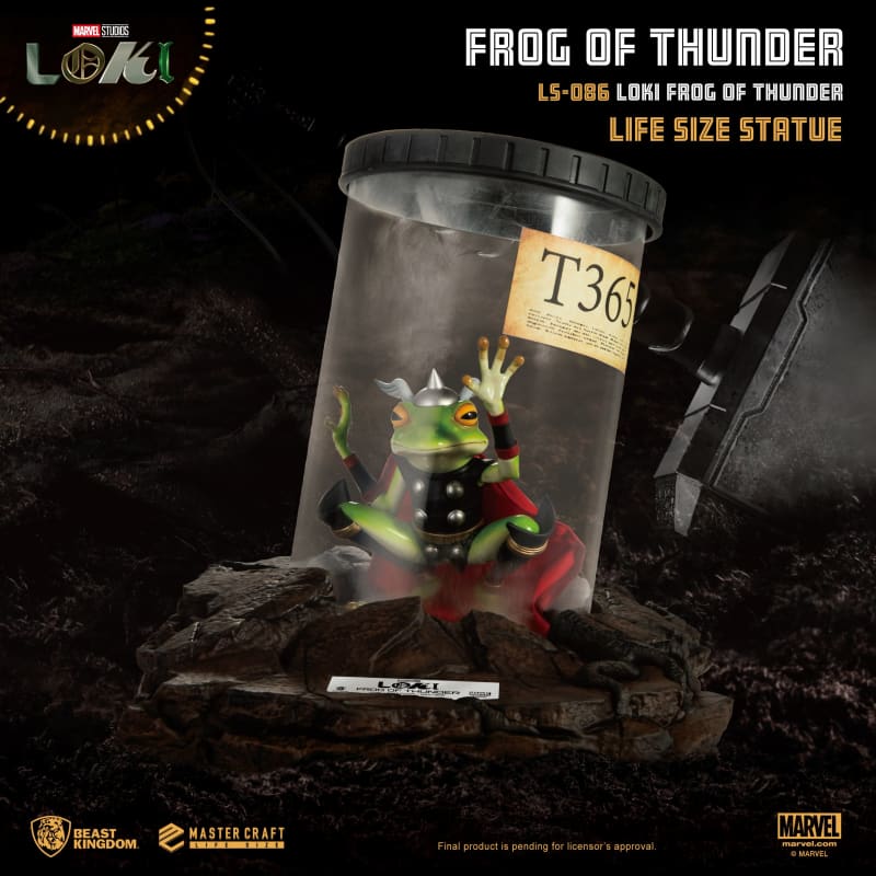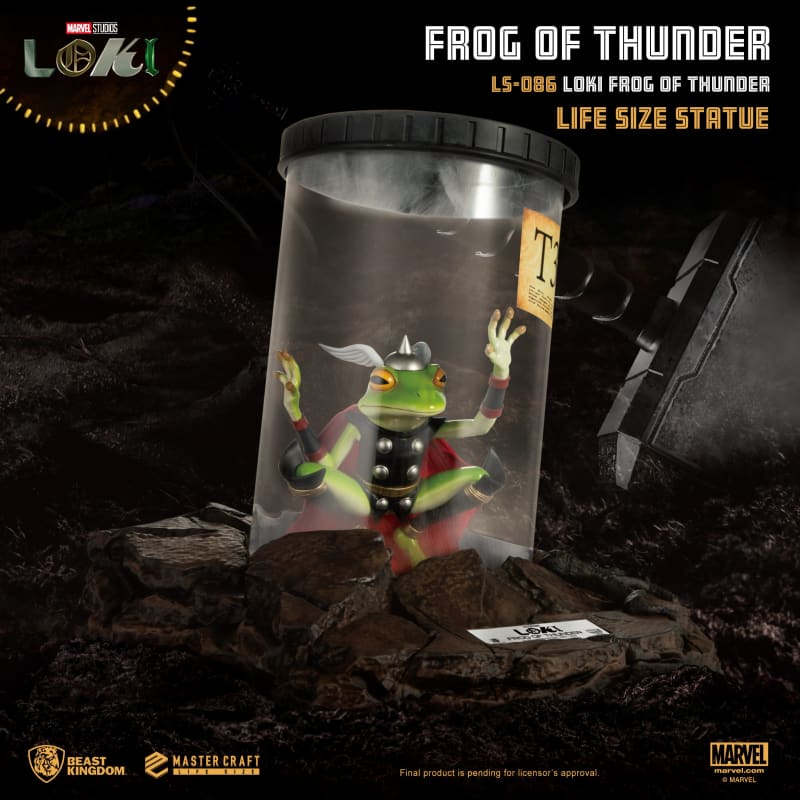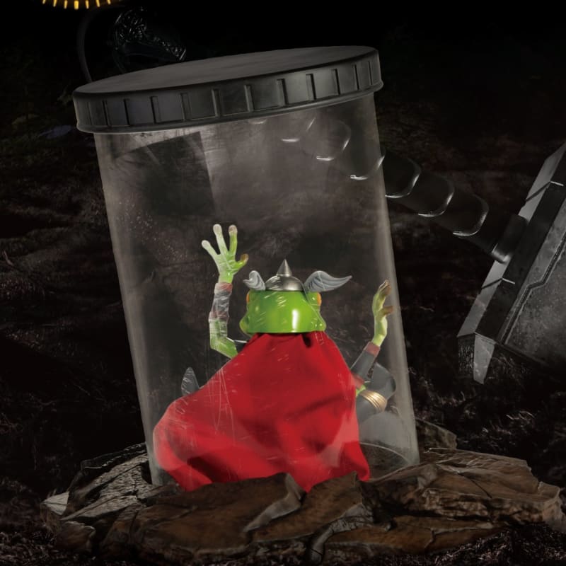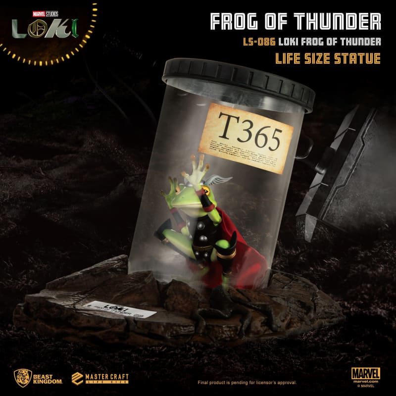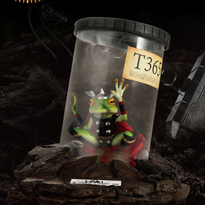 Beast Kingdom’s ‘Entertainment Experience Brand’ is ready to showcase a 1:1 sized statue of Thorg the unique frog god of thunder! The detail’s down to the smooth, bright frog skin is accurately recreated. The scene captures the moment Thorg is encased in a glass jar, with the infamous T365 label, whilst standing on a rocky hill! Make sure this unique take on a classic, yet whacky Thor is delivered to a desk near you. Only from an official Beast Kingdom outlet!