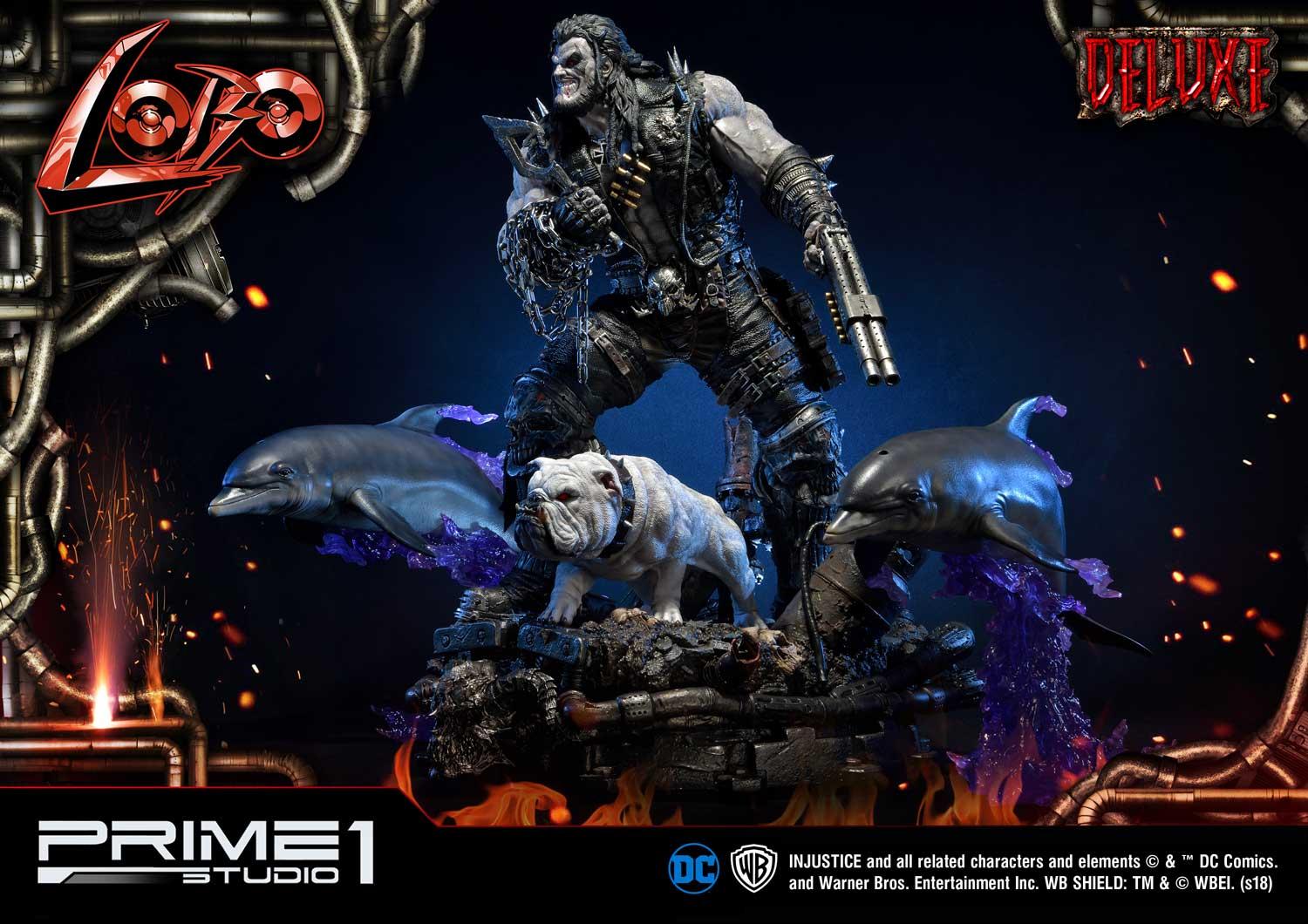 Prime 1 Studio is proud to present 1/3 scale UMMDCIJ-01DX: Lobo Deluxe version from Injustice: Gods Among Us. Injustice is an action fighting video game based on the DC Comics universe which Lobo is available as a DLC Character in this game. Lobo is the last of his known alien race, the Czarnians. He is a violent and destructive man through and through, even to his Czarnian name which means “he who devours your entrails and thoroughly enjoys it.” He also committed mass genocide against his entire race using a swarm of flying scorpions. Seeing nothing else to do, Lobo spent his days as a bounty hunter, killing anyone as long as the price is right. He’s also been one to team up with different people in the DC Universe such as Green Lantern and Superman. Lobo stands with Dawg, his follower alien dog, approximately 39 inches tall and approximately 39 inches wide with the Space Dolphins. This is the ultimate must-have statue for all Lobo fans!