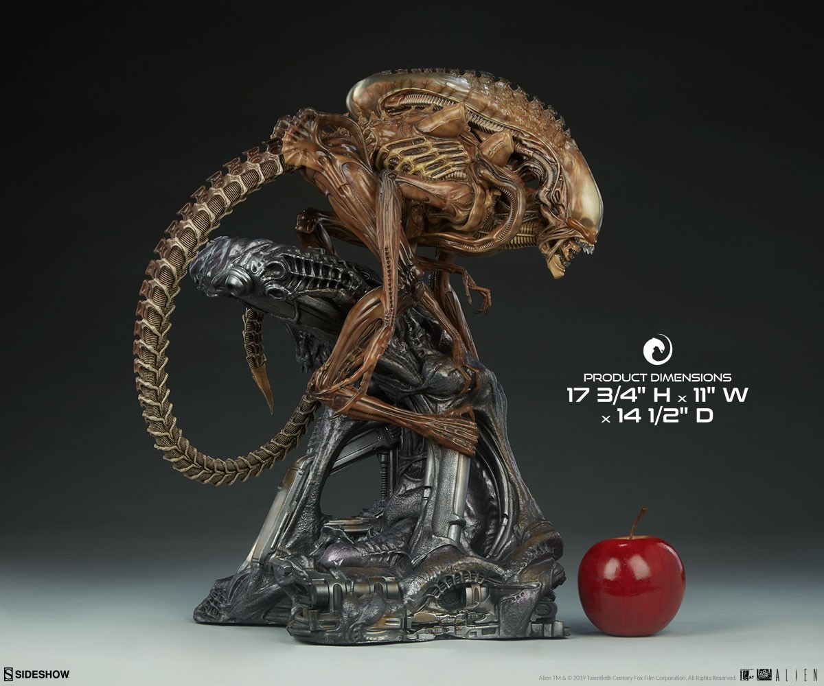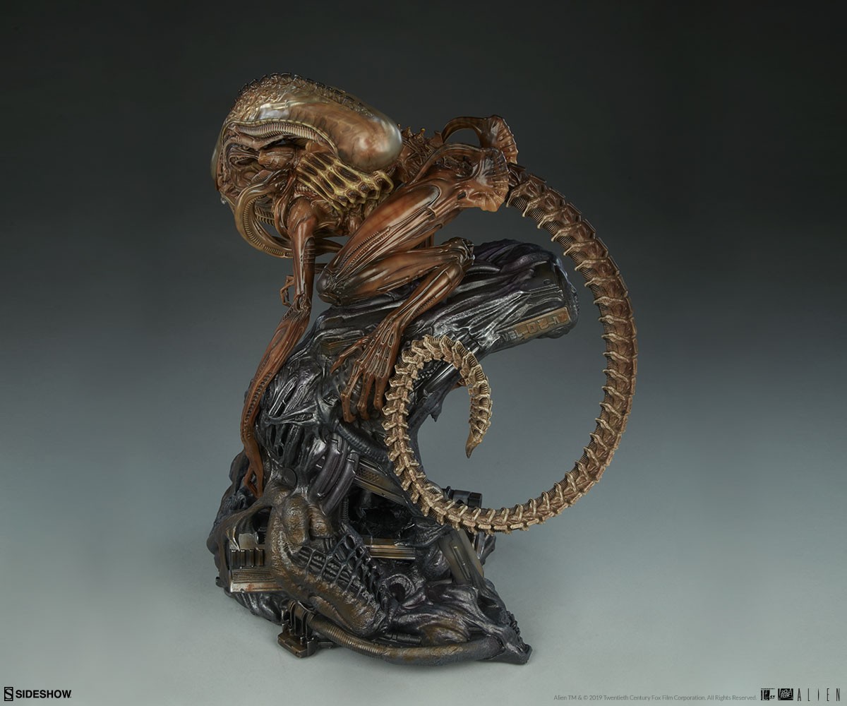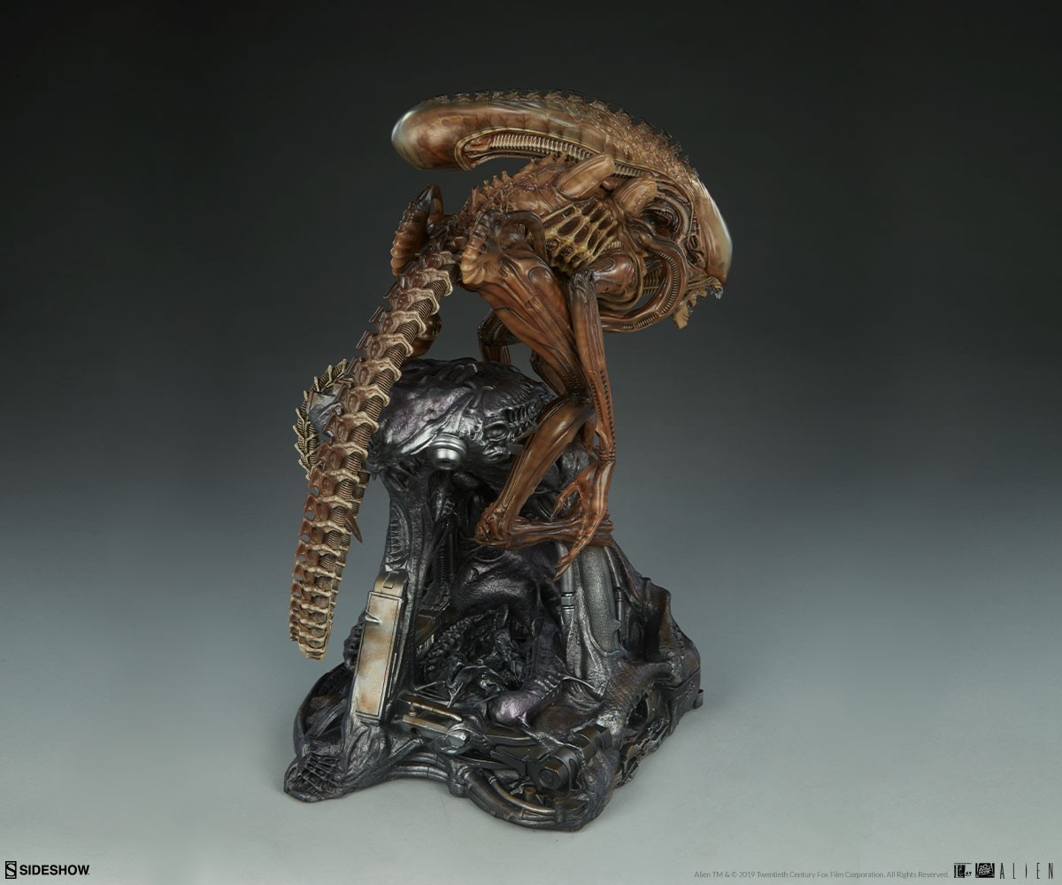 The Alien Warrior- Mythos Maquette reimagines the frightening presence of this relentless hunter like never before, while maintaining H.R. Giger’s signature bio-mechanical aesthetic. Crouched atop an infested ship base, the Alien Warrior measures 17.75” tall. The sinister inner skull of the Xenomorph is visible through the creature's ridged head dome, while its hissing mouth reveals the monster’s iconic inner jaws. Its distinct coloration adds a new degree of unsettling detail to the creature, giving the Alien Warrior an insectoid quality.