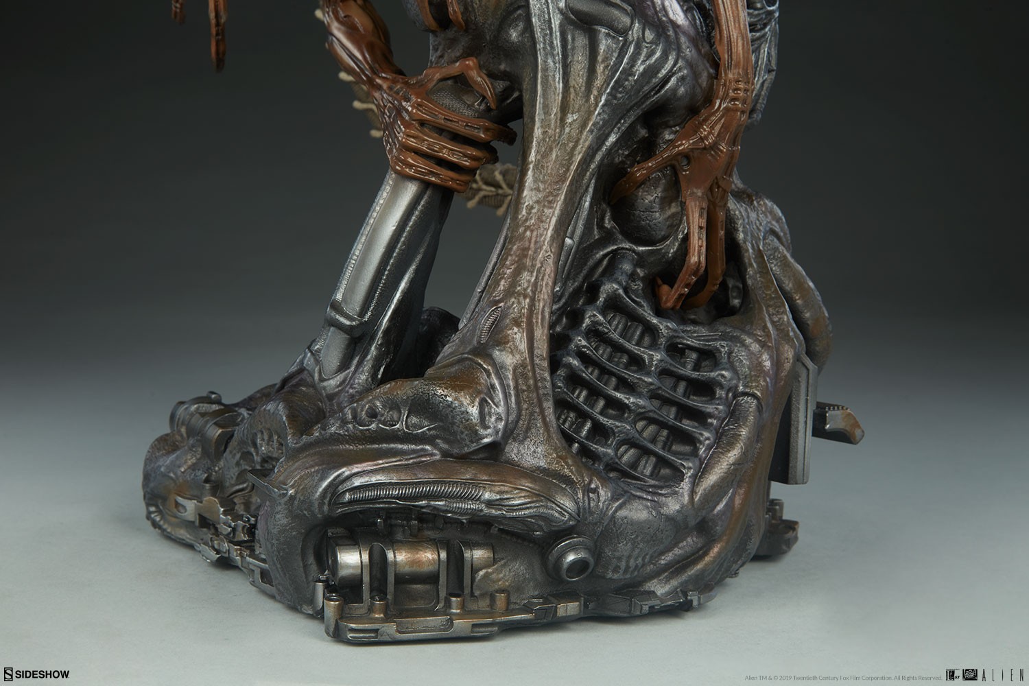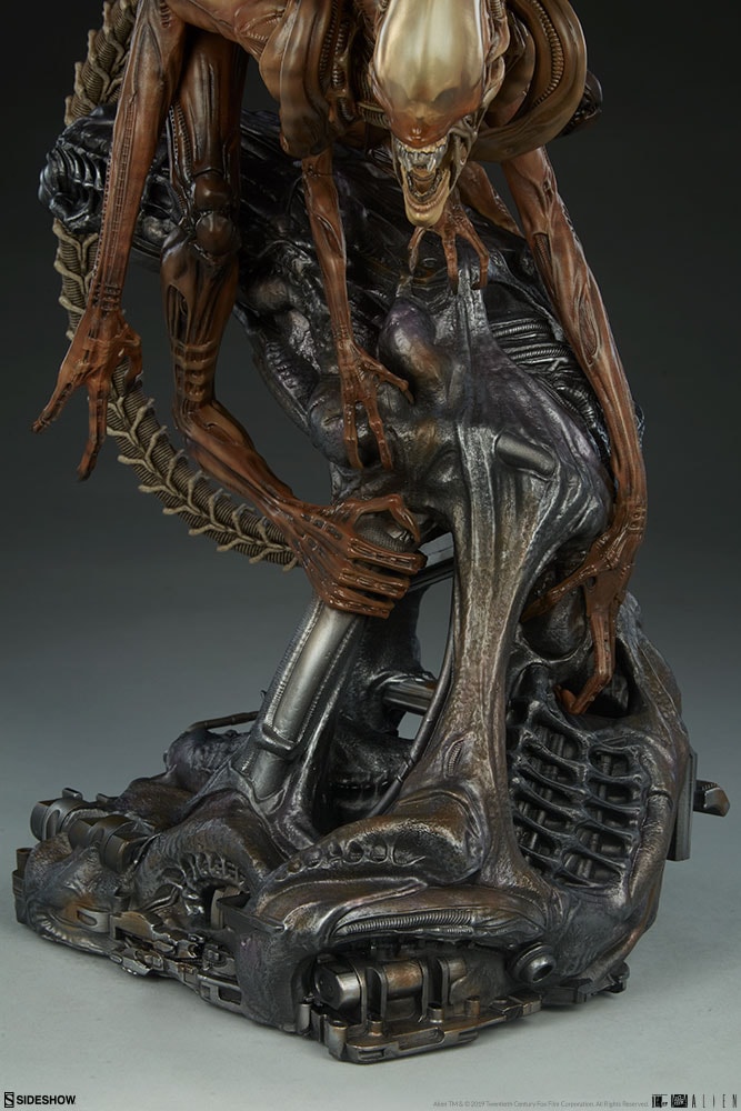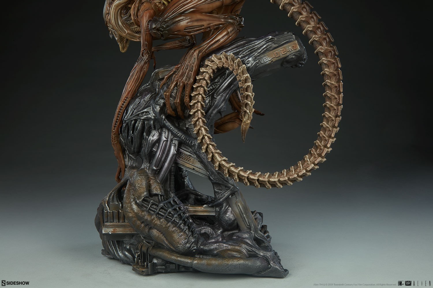 The Alien Warrior- Mythos Maquette reimagines the frightening presence of this relentless hunter like never before, while maintaining H.R. Giger’s signature bio-mechanical aesthetic. Crouched atop an infested ship base, the Alien Warrior measures 17.75” tall. The sinister inner skull of the Xenomorph is visible through the creature's ridged head dome, while its hissing mouth reveals the monster’s iconic inner jaws. Its distinct coloration adds a new degree of unsettling detail to the creature, giving the Alien Warrior an insectoid quality.