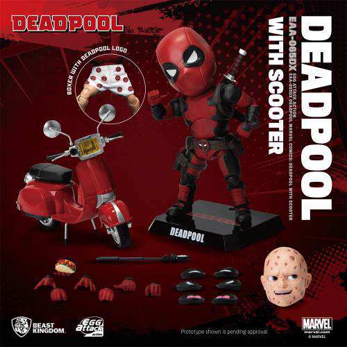 Beast Kingdom’s Entertainment Experience company is back once again with the latest signature Egg Attack Action series of Marvel Heroes action figures. This time with real fabrics used for the clothing. The classic red and black suite and leather like trousers are completely reproduced with accuracy. To really kick it back ‘The Merc With A Mouth’also gets to sport some snazzy Deadpool boxer. A real head turner! With a host of new accessories, including replaceable eyes, Taco hands, weapons and a new Wade Wilson, unmasked head sculpt, collectors can enjoy posing Deadpool in many different styles.