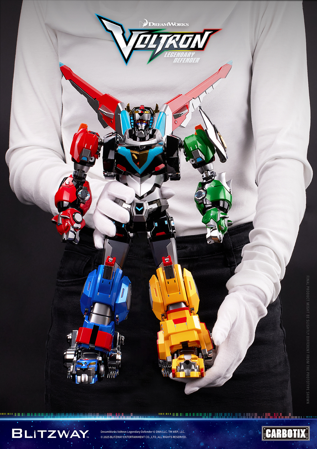 Crafted with Blitzway Carbotix’s signature Die-Cast metal, it stands as a high-end action figure that brings the legendary Voltron to life. This edition includes essential components — including the iconic Blazing Sword, Wing Shield, and five pilot minifigures.