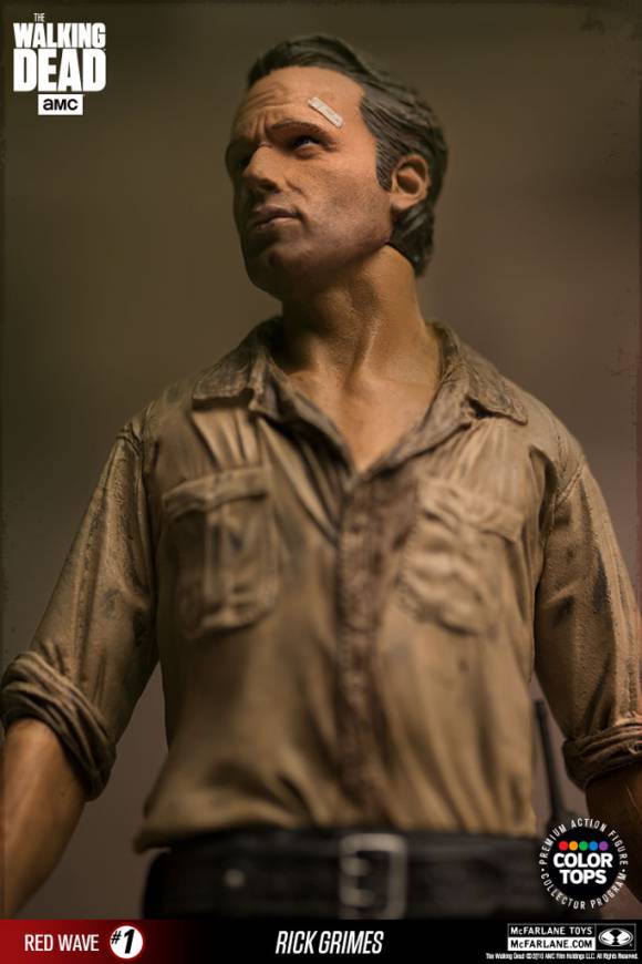 Begin your hunt for in-demand figures from the new larger size and incredibly detailed McFarlane Toys Rick Grimes action figure. From the record shattering hit television show, AMC’s The Walking Dead, Rick, the hardened Sheriff’s Deputy, does whatever it takes to protect his family and fellow survivors from both the walking dead and the living. He and others continue to seek refuge in a desolate and post-apocalyptic world.