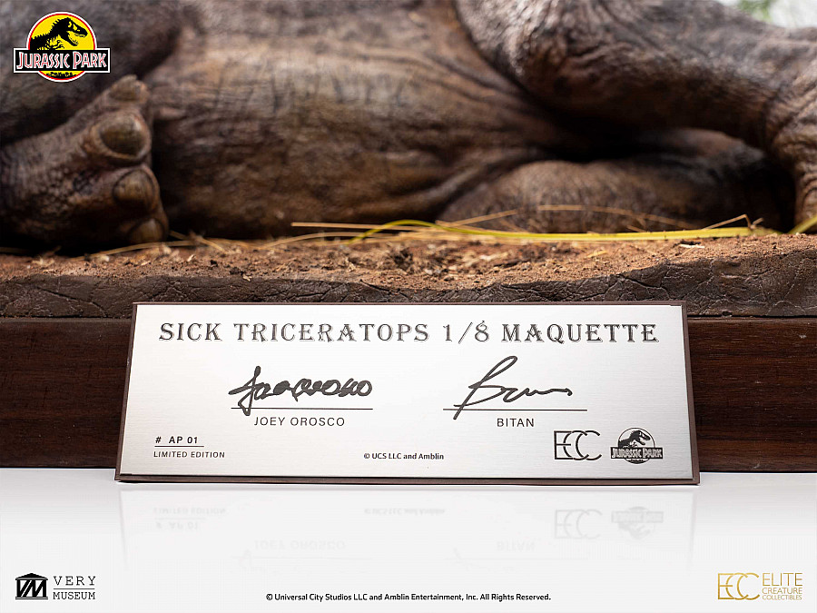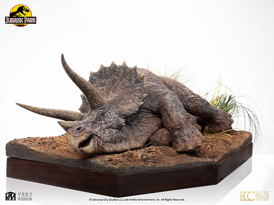 Elite Creature Collectibles is proud to present the Jurassic Park Sick Triceratops 1:8 Scale Maquette, faithfully recreated from the 1993 film. Sculpted by renowned ILM artist Bitan and meticulously painted by SWS Jurassic Park key artist Joey Orosco, this maquette captures the emotional weight and realism of one of the film’s most iconic scenes.