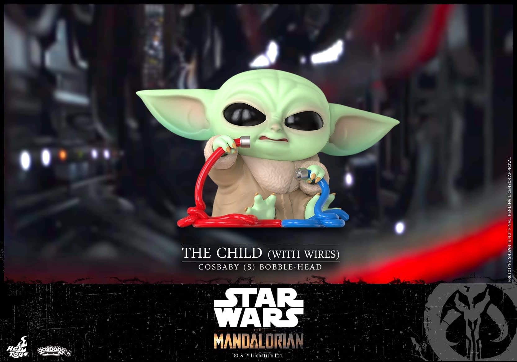 The Child (Grogu) with Wires Cosbaby (S) Hot Toys Figure captures the young foundling getting up to mischief as he plays with some wires from Mando’s ship, the Razorback, and is ready to bring the mayhem to your collection.