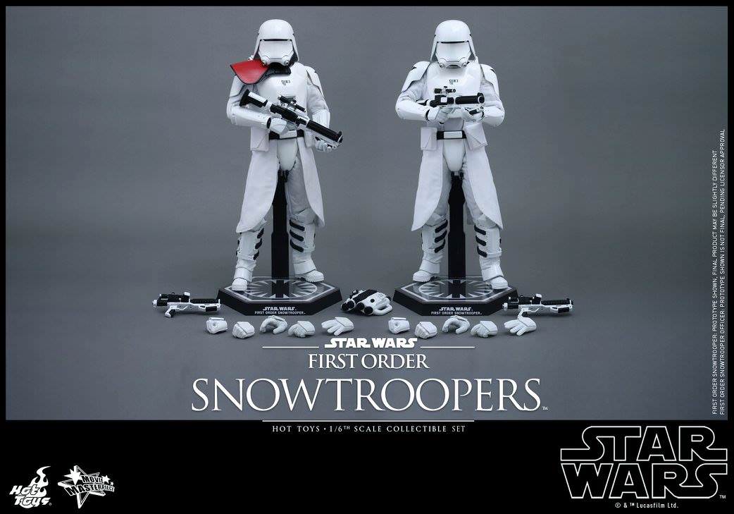 The highly-accurate collectible figures are specially crafted based on the image of First Order Snowtrooper in Star Wars: The Force Awakens. Each Snowtrooper features a brand new designed Snowtrooper armor, helmet, and backpack. The standard First Order Snowtrooper will be equipped with a blaster rifle with extended stock while the First Order Snowtrooper Officer is armed with a blaster rifle with extended stock, a pair of articulated binoculars, and a red color pauldron that indicates the rank of officer. Two additional blaster rifles are included exclusively in this collectible set!