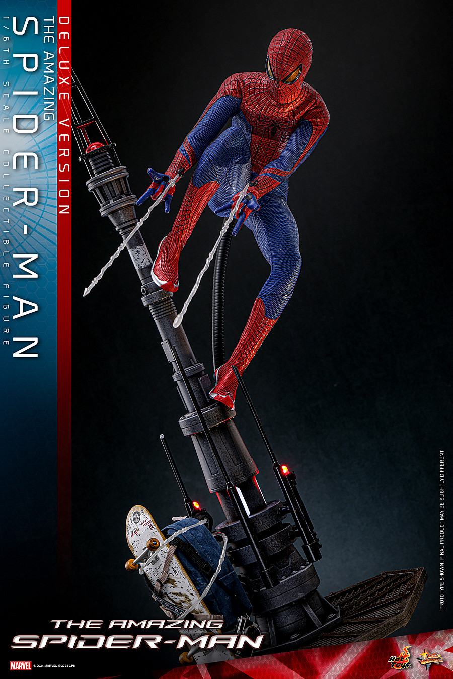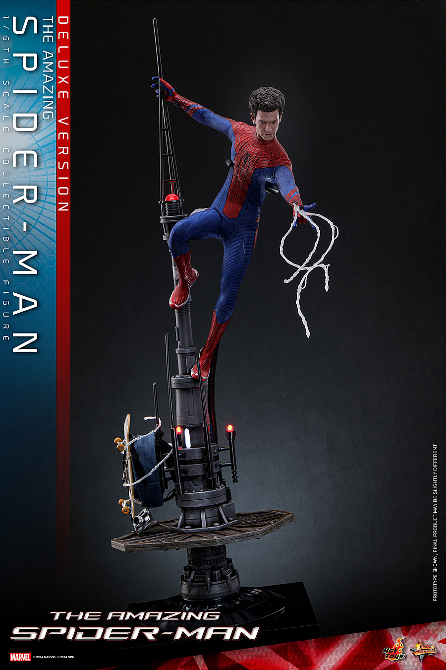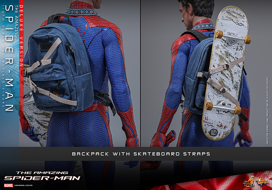 Based on the appearance of Andrew Garfield’s Peter Parker/ Spider-Man in the film, the meticulously crafted 1/6th scale collectible figure features a newly developed Peter Parker head sculpt with separate rolling eyeballs, a masked head sculpt; an exceptionally tailored red and blue suit with web pattern, embodied by a newly developed specialized body with enhanced articulation; a variety of accessories including a skateboard, a backpack, a cellphone, a camera with strip and a Spider-Man mask, as well as assorted webbing accessories.