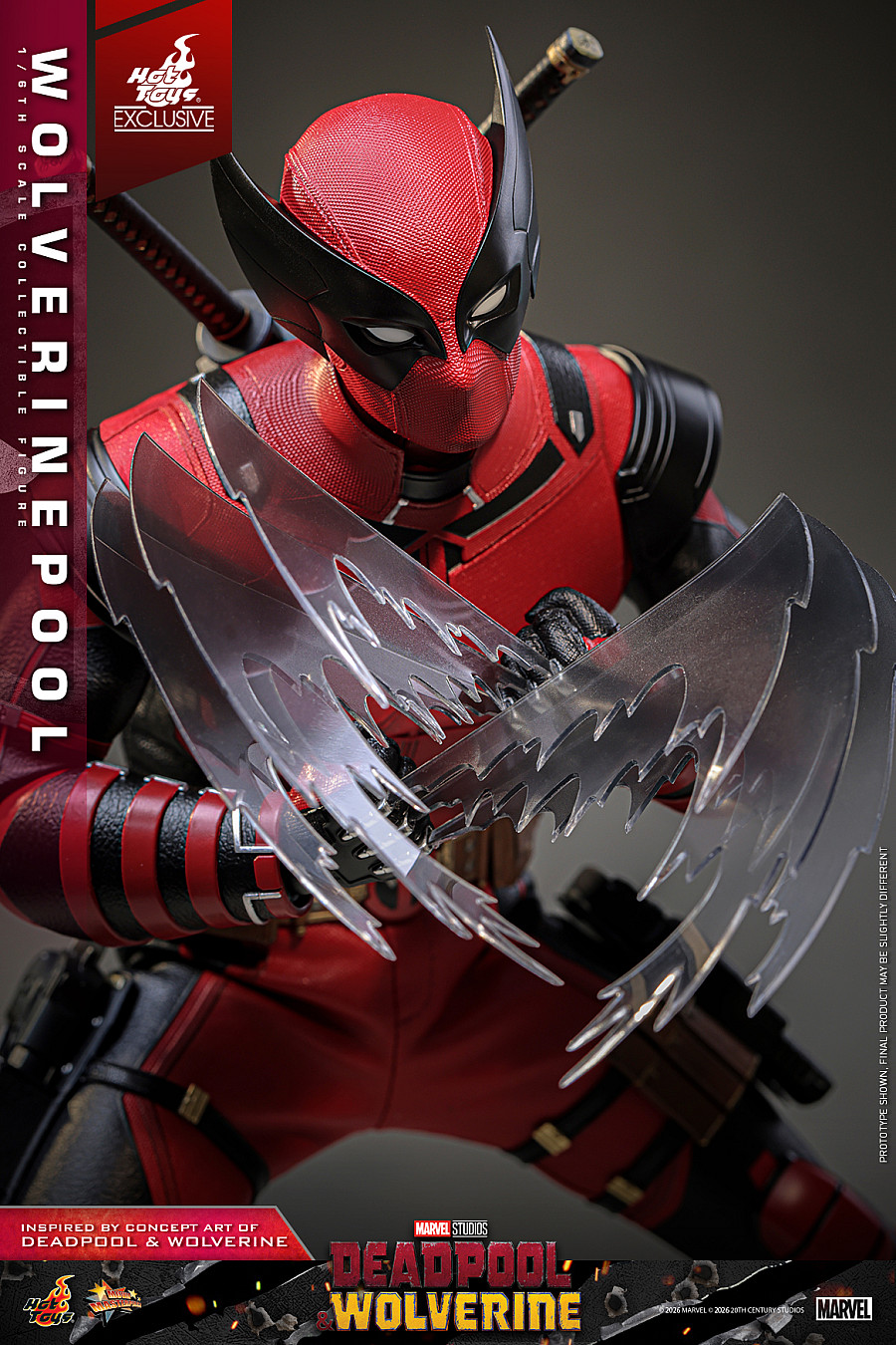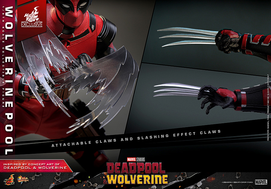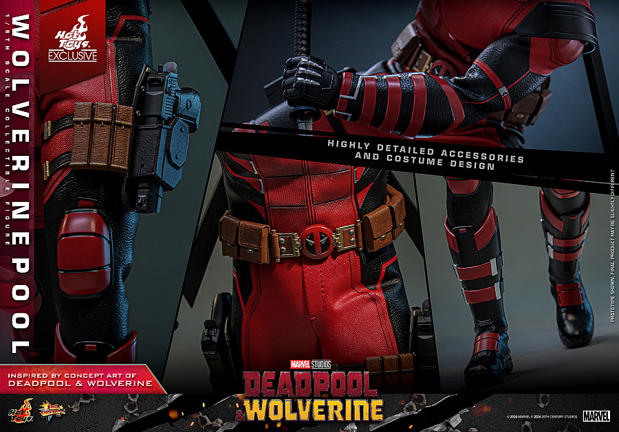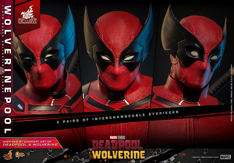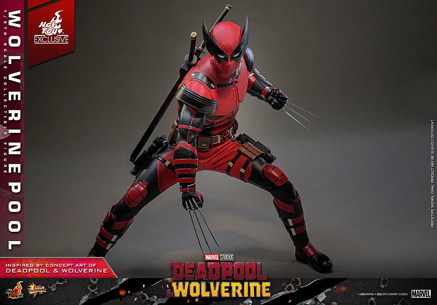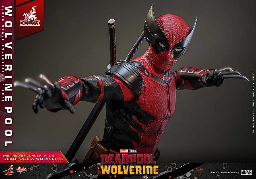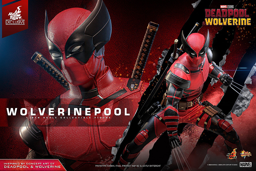 Today, no jokes attached, Hot Toys is thrilled to announce the 1/6th scale Wolverinepool Collectible Figure! Meticulously crafted based on the character in the Deadpool & Wolverine concept art, this detailed figure features a newly developed masked head equipped with three pairs of interchangeable eyepieces, allowing fans to recreate an array of hilarious and intense expressions. Eight interchangeable hands, including newly developed katana-holding and pistol-holding hands, as well as a pair of fists and claw gesture hands to facilitate a wide range of dynamic poses.