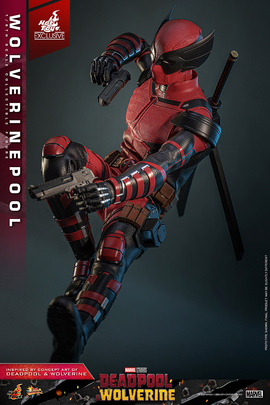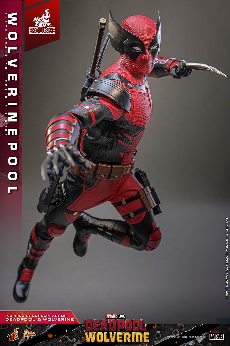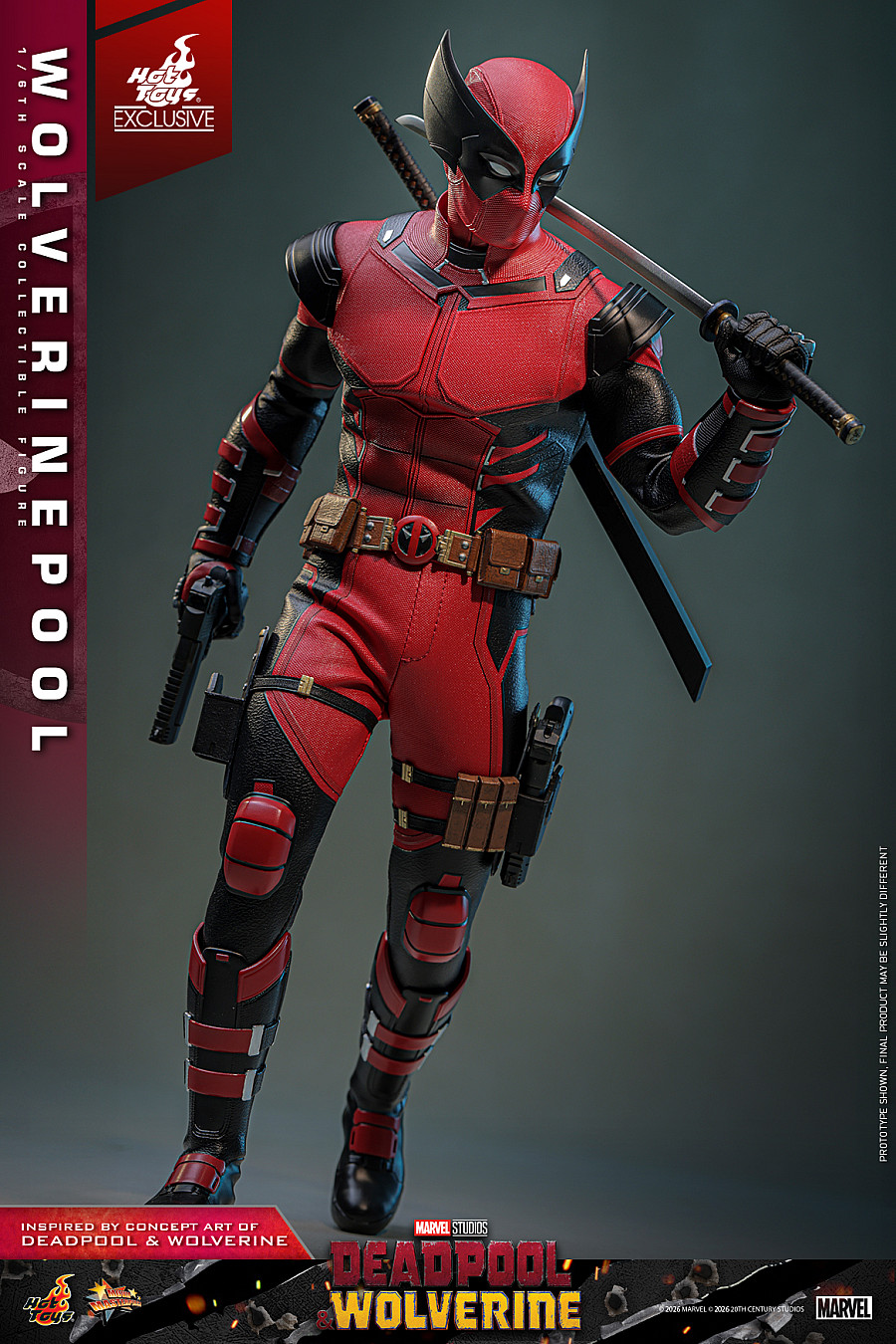 Today, no jokes attached, Hot Toys is thrilled to announce the 1/6th scale Wolverinepool Collectible Figure! Meticulously crafted based on the character in the Deadpool & Wolverine concept art, this detailed figure features a newly developed masked head equipped with three pairs of interchangeable eyepieces, allowing fans to recreate an array of hilarious and intense expressions. Eight interchangeable hands, including newly developed katana-holding and pistol-holding hands, as well as a pair of fists and claw gesture hands to facilitate a wide range of dynamic poses.