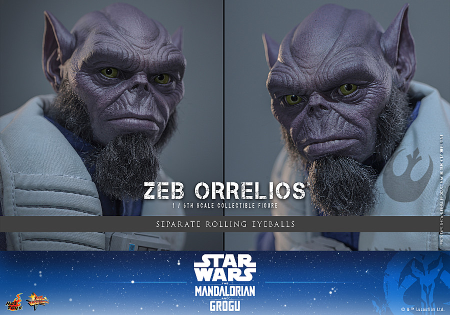 Today, Hot Toys is excited to introduce the 1/6th scale Zeb Orrelios™ Collectible Figure. This meticulously crafted figure features a newly developed head sculpt with separate rolling eyeballs and meticulously implanted wool material facial hair that perfectly capture Zeb’s unique Lasat facial features. His newly developed specialized body stands at approximately 33 cm tall with 30 points of articulation to recreate his imposing, muscular physique. The hyper-realistic fiber material hair on his limbs adds an extra layer of authenticity to his appearance. Zeb comes outfitted in a newly tailored fabric costume, including a blue one-piece flight suit and a white padded vest adorned with the Rebel Alliance symbol. His tactical gear is complete with an attachable life-support device, flight harness, and knee bandolier.