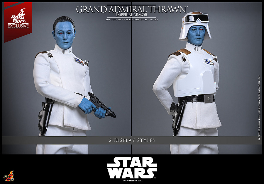 Today, Hot Toys is delighted to introduce the 1/6th scale collectible figure of Grand Admiral Thrawn™ (Imperial Armor). This exclusive figure is only available in a limited quantity of 2,500 units in selected markets. Crafted with a realistic aesthetic, this collectible figure features a head sculpt that shows his signature blue skin and piercing red eyes, equipped with a separate rolling eyeball function to capture his calculating gaze. Thrawn comes prepared for any scenario with a vast array of interchangeable hands, including both bare and gloved options.