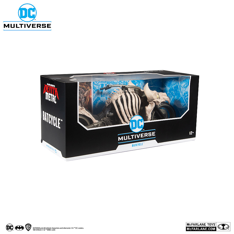 Following the universe-shattering events of Dark Nights: Metal, the Earth is enveloped by the Dark Multiverse and has transformed into a hellish landscape twisted beyond recognition. Commanding an army of the undead, Batman rides a Batcycle made from the bones of a Joker dragon in his war against The Batman Who Laughs and his omnipotent goddess, Perpetua.