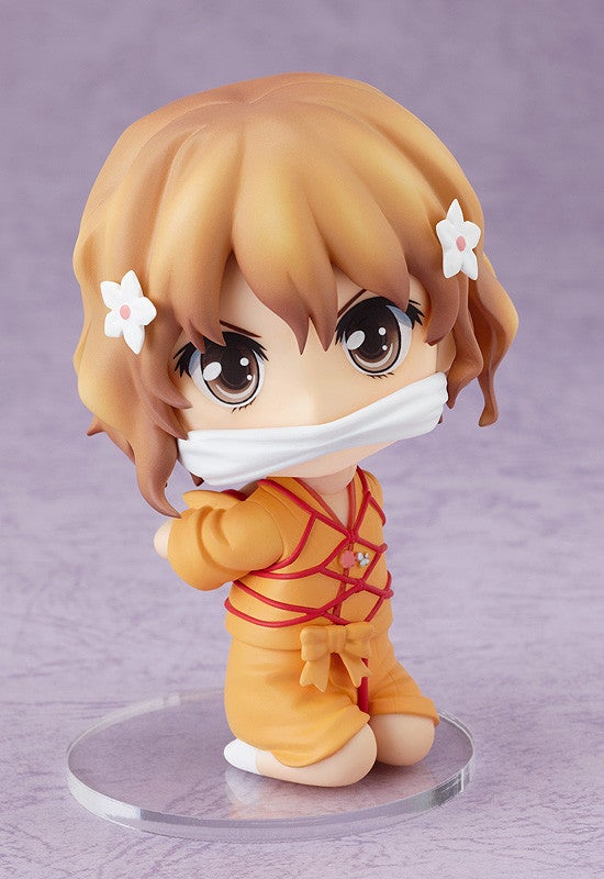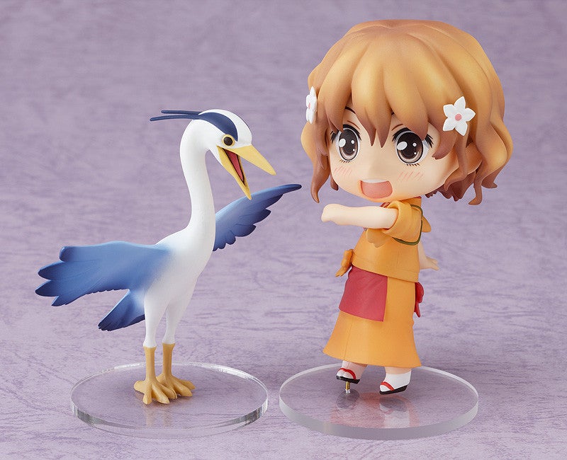 She comes with a large variety of optional parts, including four-legged trays to carry meals to the customers at the inn, as well as a broom for her to sweep the entrance. An extra figure of the blue heron that wanders around the inn is also included! She even comes with an extra body to recreate the bondage scene from episode 3 of the series - all these extras as well as various expressions to help recreate all your favorite scenes in Nendoroid size!
