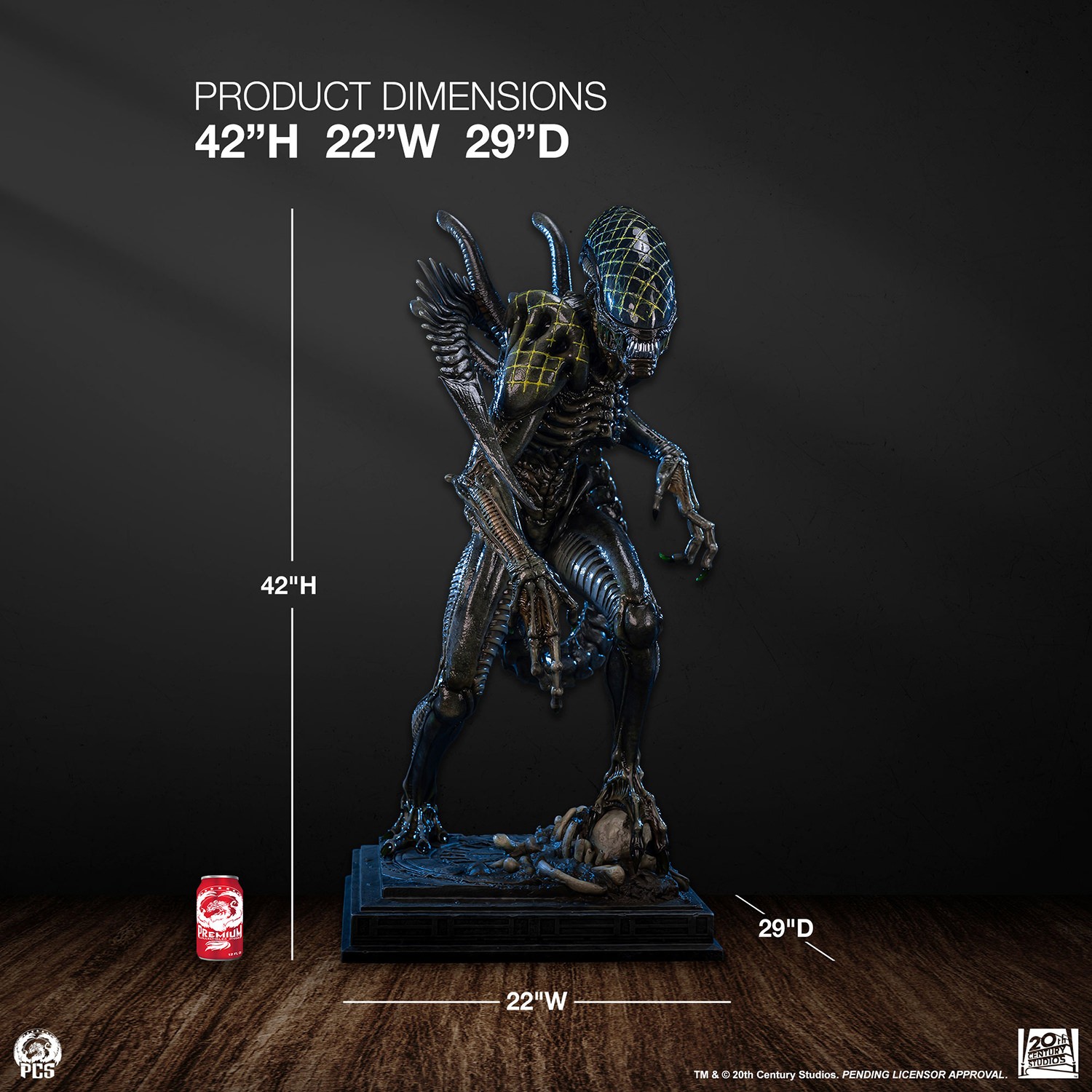 Standing 42” tall, the Grid Alien 1:2 Statue is fully sculpted, bringing to life all the incredible details of the iconic Xenomorph design. Scarred in battle by a ferocious Predator, the Grid Alien’s head and shoulders are marked with a crisscross pattern from being ensnared by its deadly foe’s net. The Alien’s acid blood freed it from the snare, but left a vivid green pattern where the trap had constrained it.