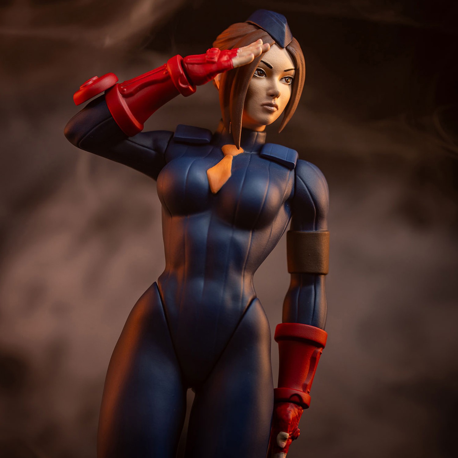 Sagat has been a mainstay of the Street Fighter tournament from its earliest days. His scarred chest and imposing stature are brought to vivid life in this fully painted statue depicting the Muay Thai fighter in his classic blue and yellow shorts and hand/leg wraps. Juli may be the smaller fighter, but her rigid discipline is on full display here. She stands in a saluting pose decked out in a navy blue leotard with a yellow tie and armored red gauntlets, standard issue for a Shadaloo agent.