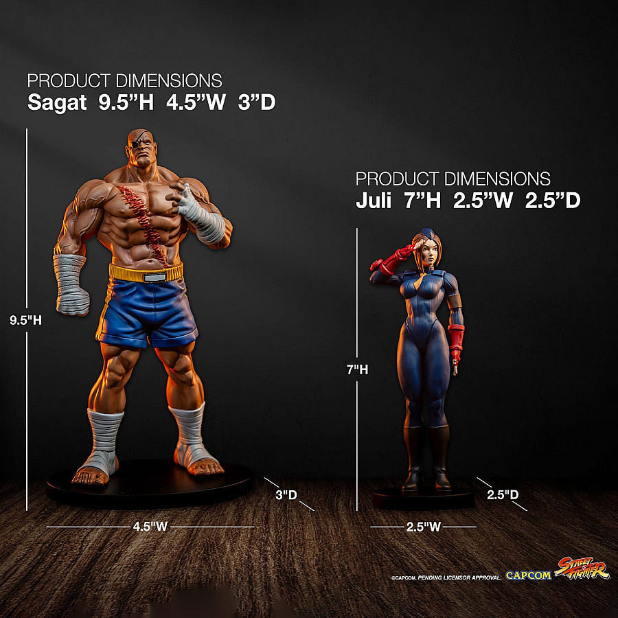 Kick your Street Fighter collection into fighting shape and pre order the Street Jam - Sagat & Juli 1:10 Statue Set by PCS today.