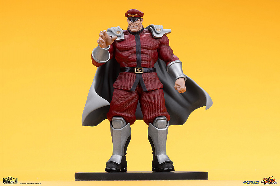 M. Bison stands tall and proud, flashing his megalomanic grin as he reaches out with one hand while clenching the other into a strong-willed fist. This authoritative aggressor radiates power with his red uniform and assertive gaze, ready to conquer all he sees. M. Bison’s fully sculpted cape flows around him, encapsulating his domineering presence.