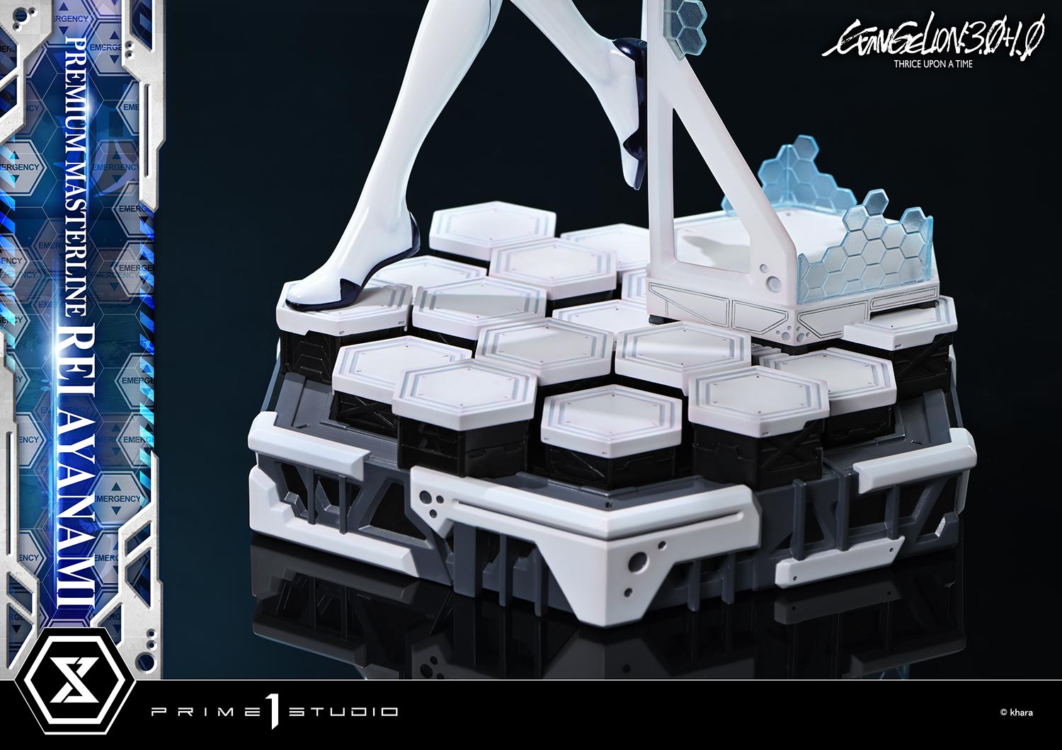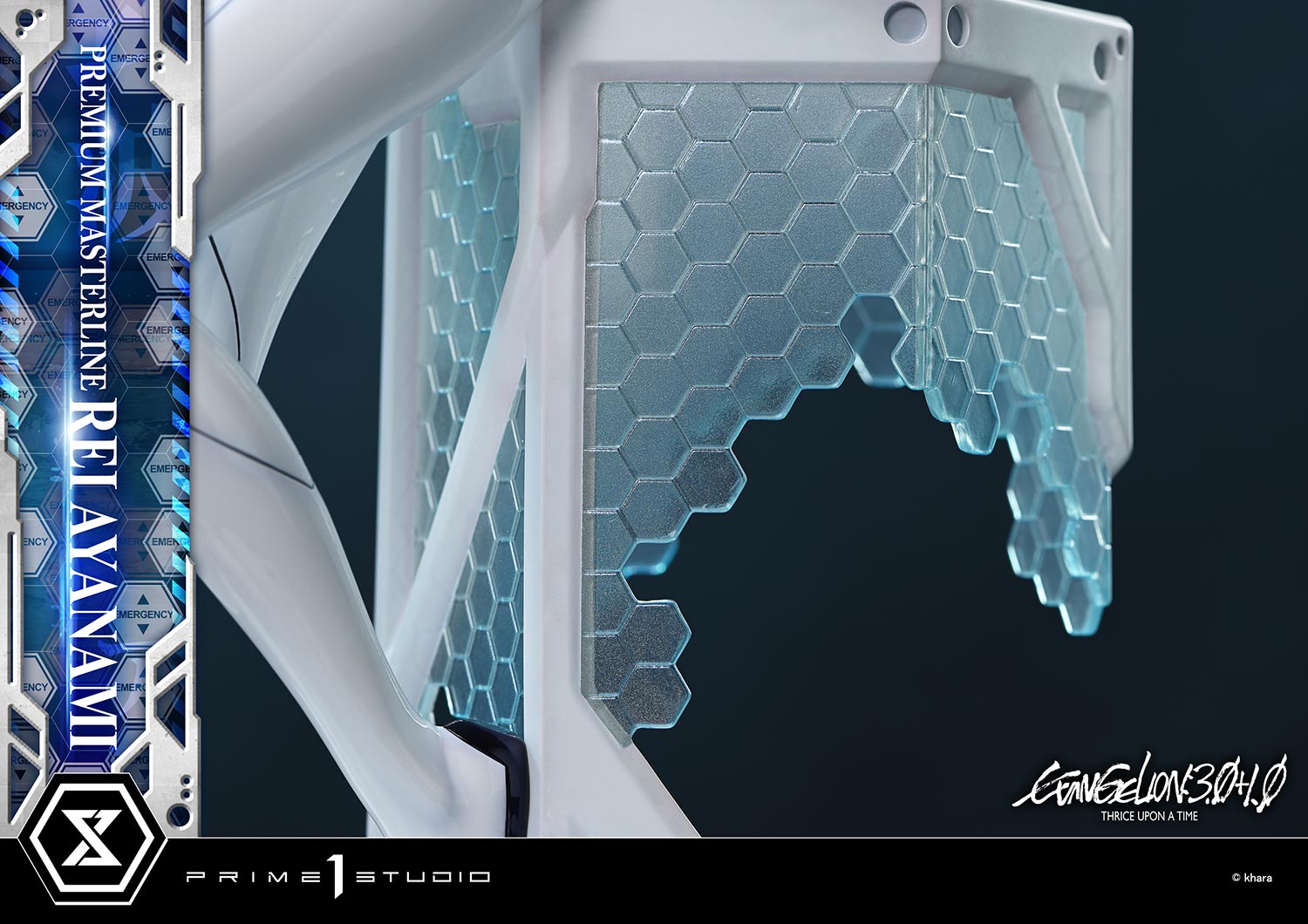 The special base is constructed from hexagonal motifs, an iconic design element from the film. Clear parts resembling fractured L-Barrier boundary surfaces evoke the instability of the Minus Space.