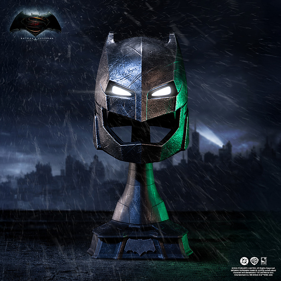 PureArts recreates one of the most imposing Batman suit upgrades ever created – the Armored Batman helmet as seen in Batman v Superman: Dawn of Justice. Designed to reflect the brutal, mechanical aesthetic of Batman’s power armor, this cowl upgrade features reinforced plating, sharp industrial lines, and a commanding presence that embodies his preparation for an all-out war with Superman.