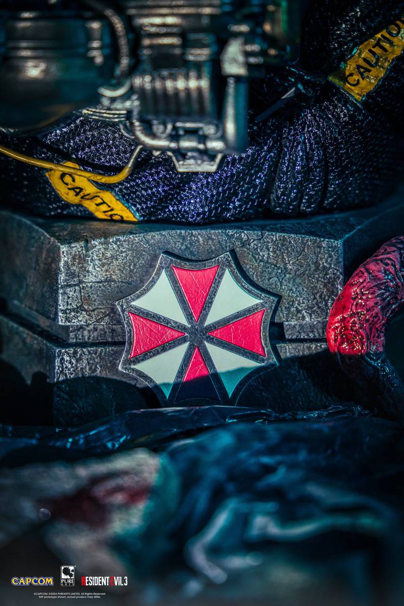 PureArts masterfully crafts the imposing and horrifying bio-weapon from Resident Evil 3, Nemesis, in a massive 1/1 scale bust. His half-exposed face, decaying, stitched skin, protruding teeth, and mechanical tubing are carefully sculpted and painted to create an impressively terrifying bust. Nemesis is mounted atop a concrete-style base bearing the Umbrella Corporation logo, referencing the sinister organization responsible for his creation. Towering at 3 feet tall, you will feel the danger Nemesis brings.