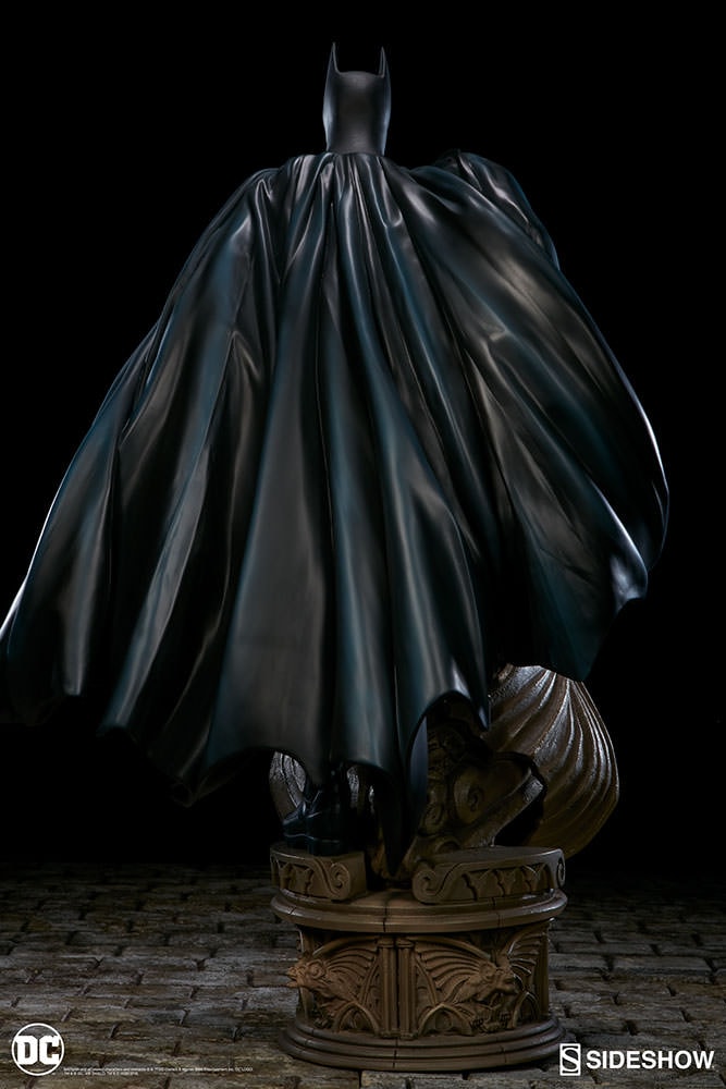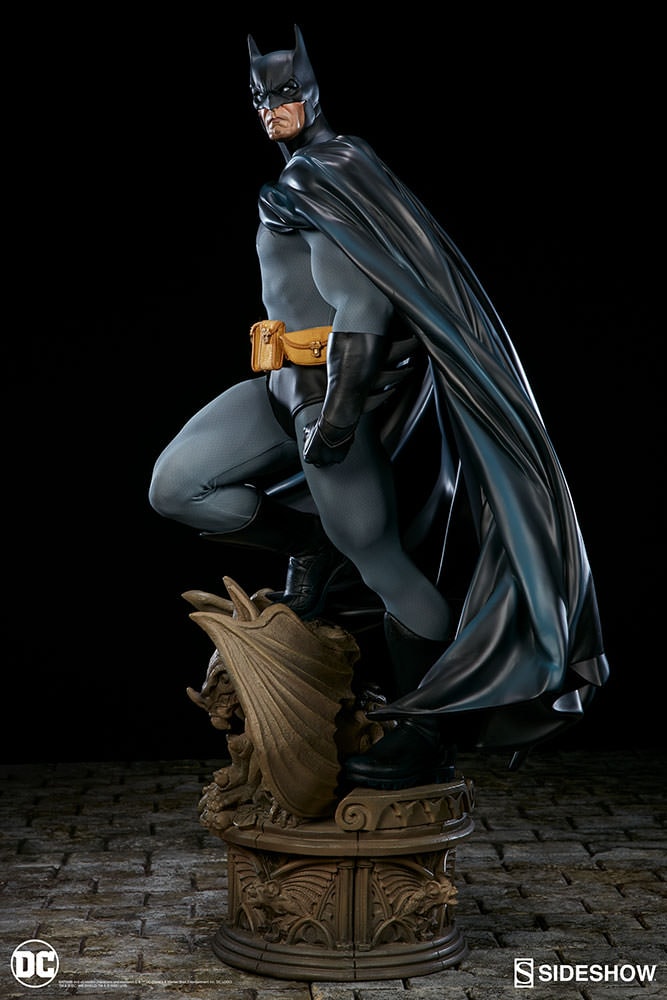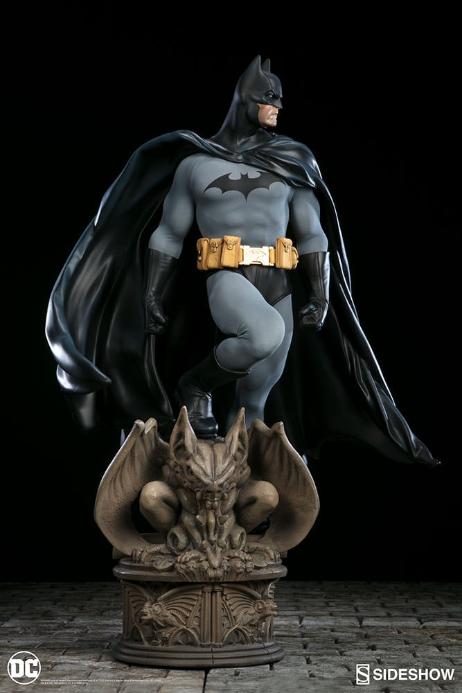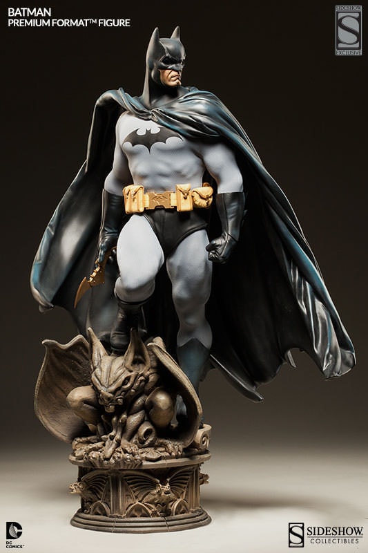 Sideshow Collectibles is proud to introduce the newest entry in our DC Comics Premium Format figure collection, the Dark Knight himself, Batman. Towering over two feet tall, the Caped Crusader stands atop a stone gargoyle, looming over the insidious criminals of Gotham City. Presented in 1:4 scale, the dynamic and impressive figure is individually hand painted and finished with the quality and attention to detail that is the trademark of a handcrafted Sideshow Collectibles product. The Batman Premium Format figure, featuring two unique head sculpts, is a truly extraordinary addition to any collection.