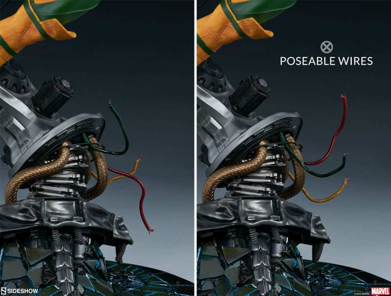 Measuring just over 22” tall, the Rogue Maquette defies gravity in this dynamic and exciting composition that features the mutant’s marvelous powers on display. Flying over a detailed Danger Room environment base, Rogue wrenches an intricate mechanical buzz saw from the floor, ready to take a swing at any unwelcome X-Mansion guests.