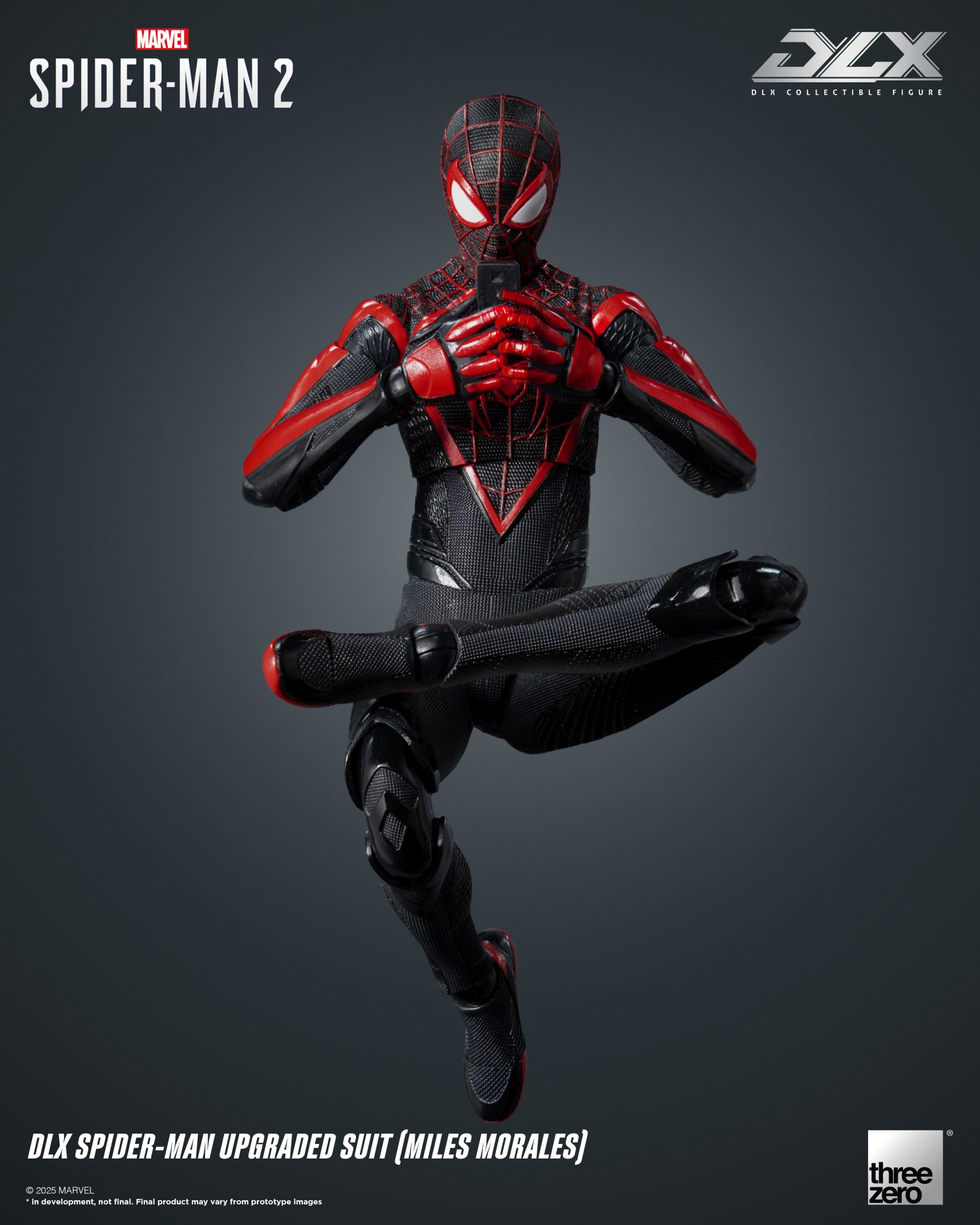 From the video game Marvel’s Spider-Man 2, threezero proudly presents another Spider-Man figure ─ the DLX Spider-Man Upgraded Suit (Miles Morales)! As the new Spider-Man, Miles dons a new suit and joins forces with his mentor and friend, Peter, to protect Marvel’s New York!