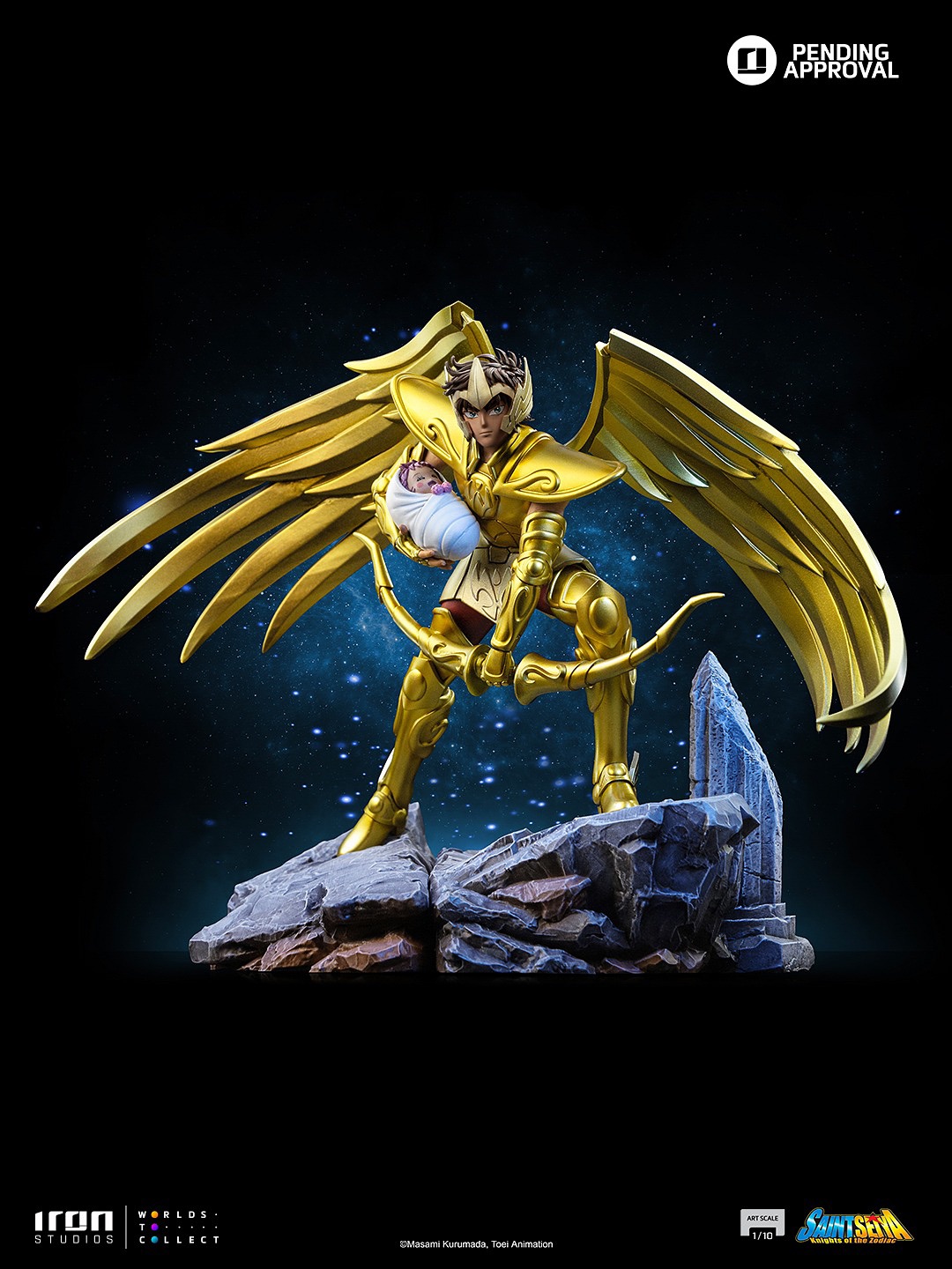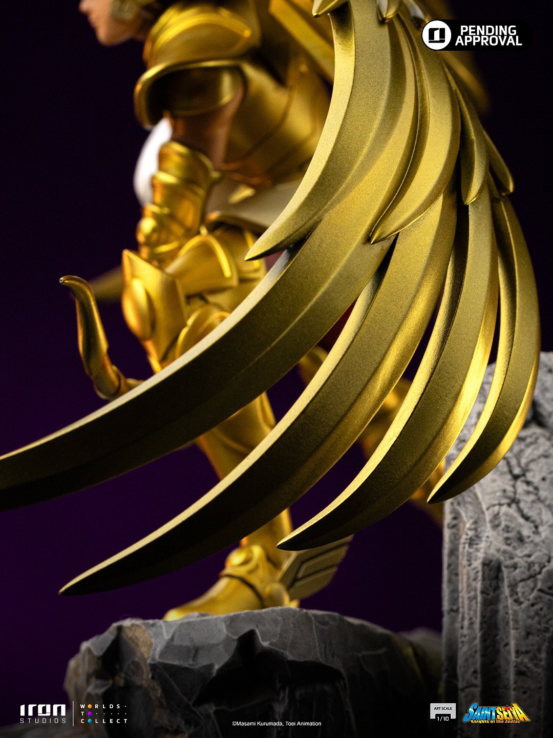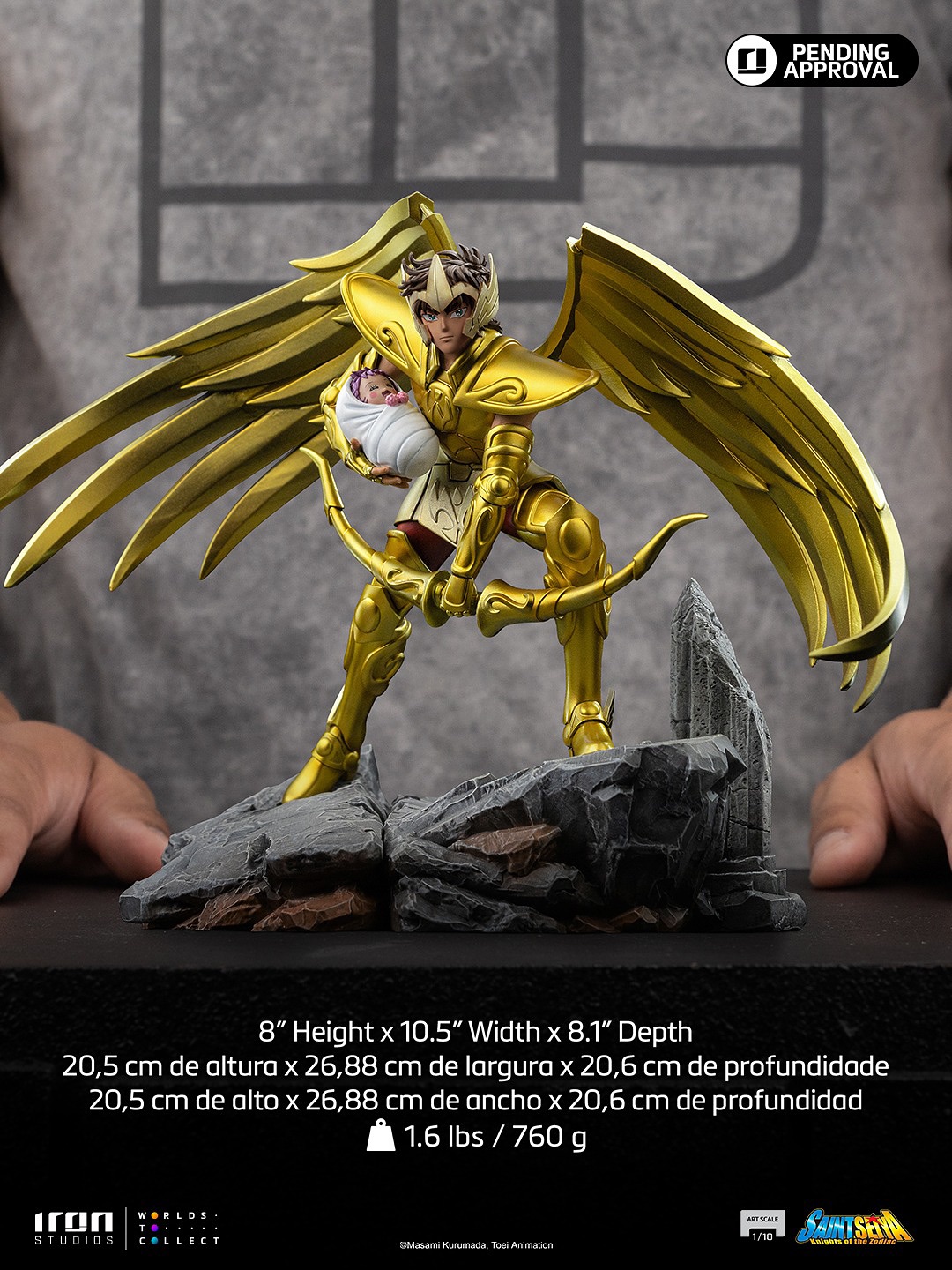 The noble Gold Saint Sagittarius Aiolos is captured in Iron Studios’ Art Scale 1/10 line. A must-have for Saint Seiya fans, representing justice and strength in collectible form.