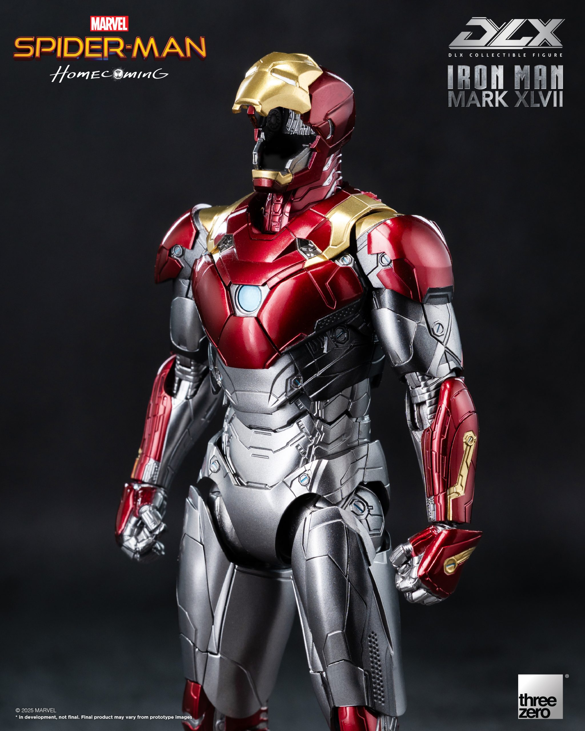 threezero is thrilled to introduce the DLX Iron Man Mark 47 as the next Marvel DLX action figure. The armor features a two-tone metallic silver paint, accented with iconic red and gold details, faithfully replicating its appearance in the movie. The figure includes an interchangeable anti-face helmet and a Deployer with Mini-Repulsors and multiple effects parts; enhancing playability.