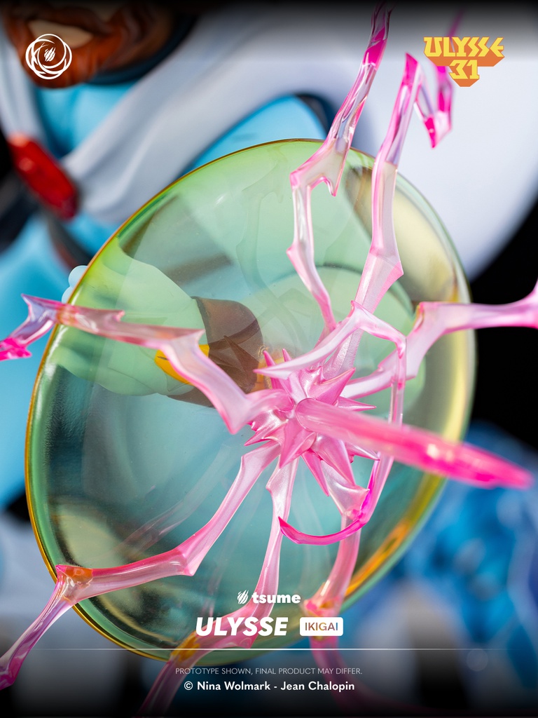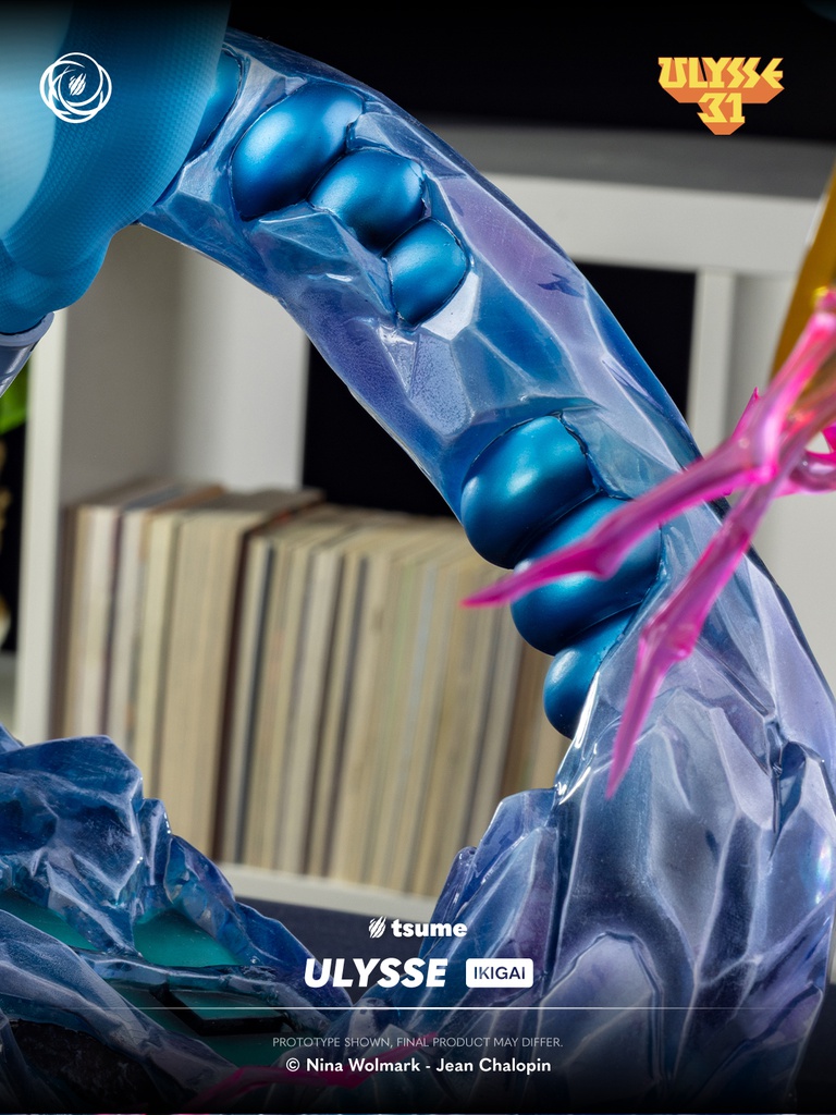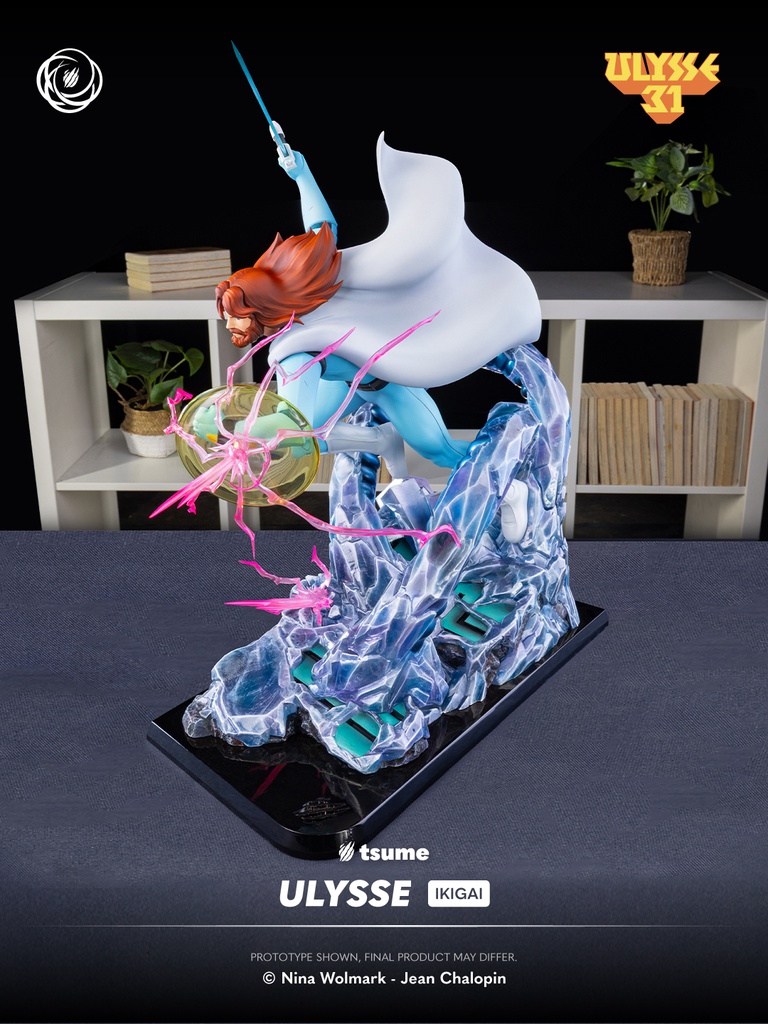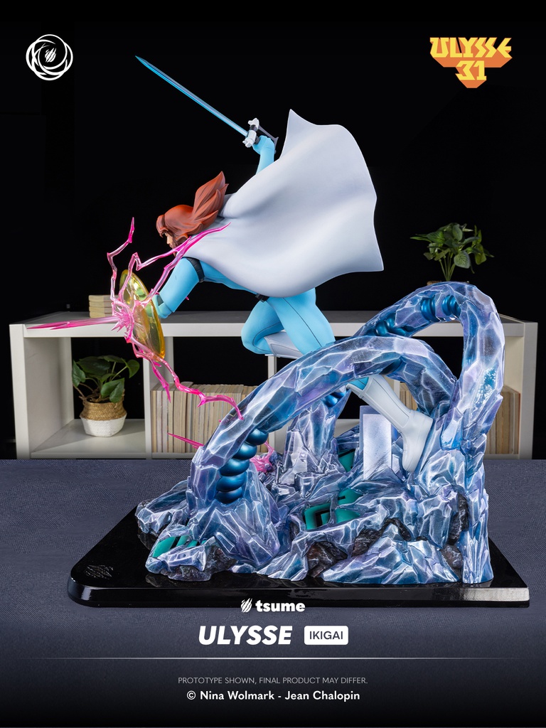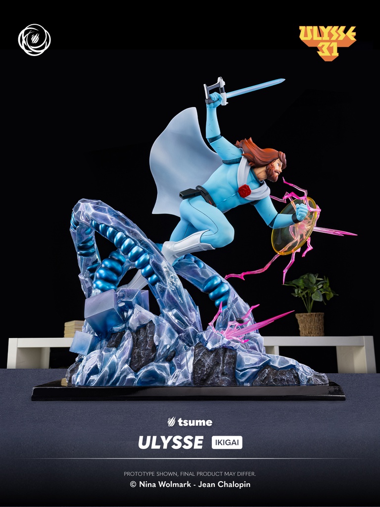 This Ikigai statue depicts Ulysses in full action, armed with his sword and shield, surrounded by mechanical tentacles that evoke the dangers of the cosmic Olympus. The dynamic composition perfectly reflects the tension and battles that defined the series. The expressive sculpt, the retro-inspired color palette faithful to the original animation, and the material effects all emphasize the distinctive futuristic aesthetic of Ulysses 31.