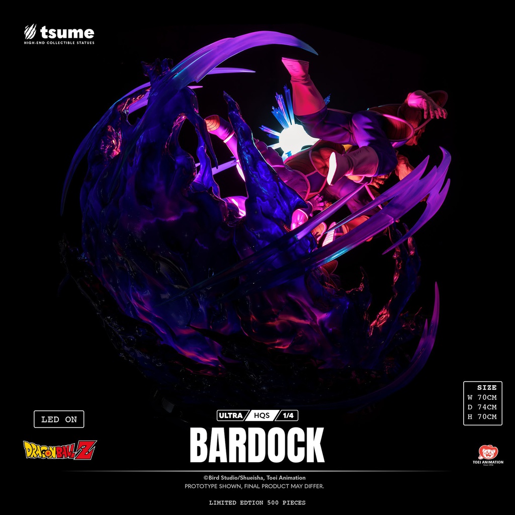 With this monumental piece from the Ultra HQS line, Bardock is captured in his ultimate charge against Frieza, as Planet Vegeta explodes behind him.